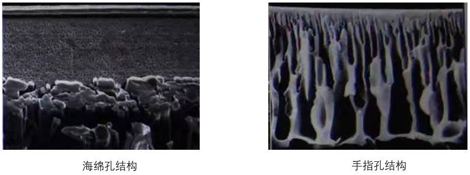 膜是组成膜包和中空纤维柱的核心,膜材料和结构对工艺性能有重要影响。在结构上,超滤膜主要以各向异性上下两层不对称膜为主。下层为多孔支撑层,多数为聚烯烃材质。膜包主要有海绵孔和手指孔两种。海绵孔上下均匀,可以承受一定背压;手指孔上小下宽,可以提高通量。而微滤膜则主要以对称膜为主。