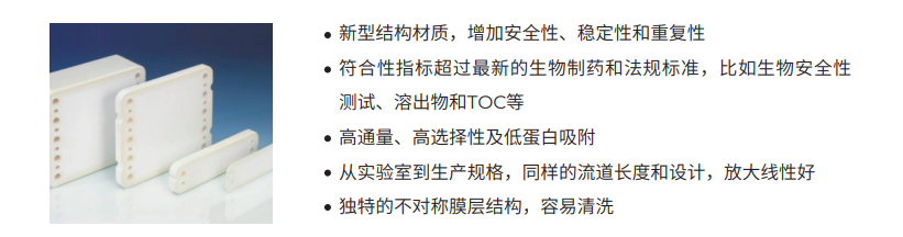 T系列Delta再生纤维素膜包因其固有的亲水性特点,表现出极低的蛋白吸附和低污堵特性,滤速稳定以及回收率高。截留膜为不对成致密海绵孔结构。纤维素膜还具有良好的有机溶剂耐受性。可兼容DMSO (20%) ,DMA (20%) ,CAN (20%) 等有机溶剂。