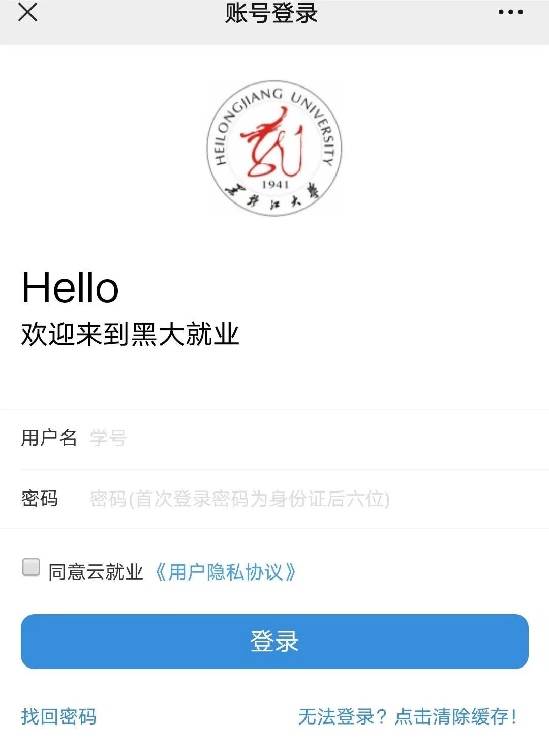 7. 输入学号和密码,首次登录黑大就业默认密码为身份证后六位