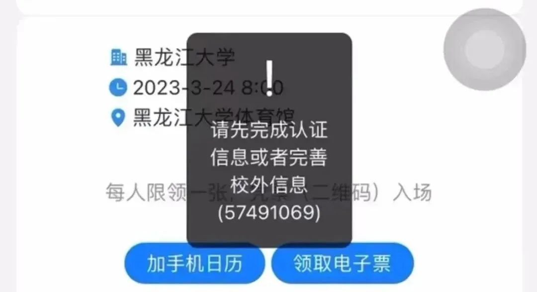 8. 登录成功之后,点击领取电子票会自动跳转学号认证