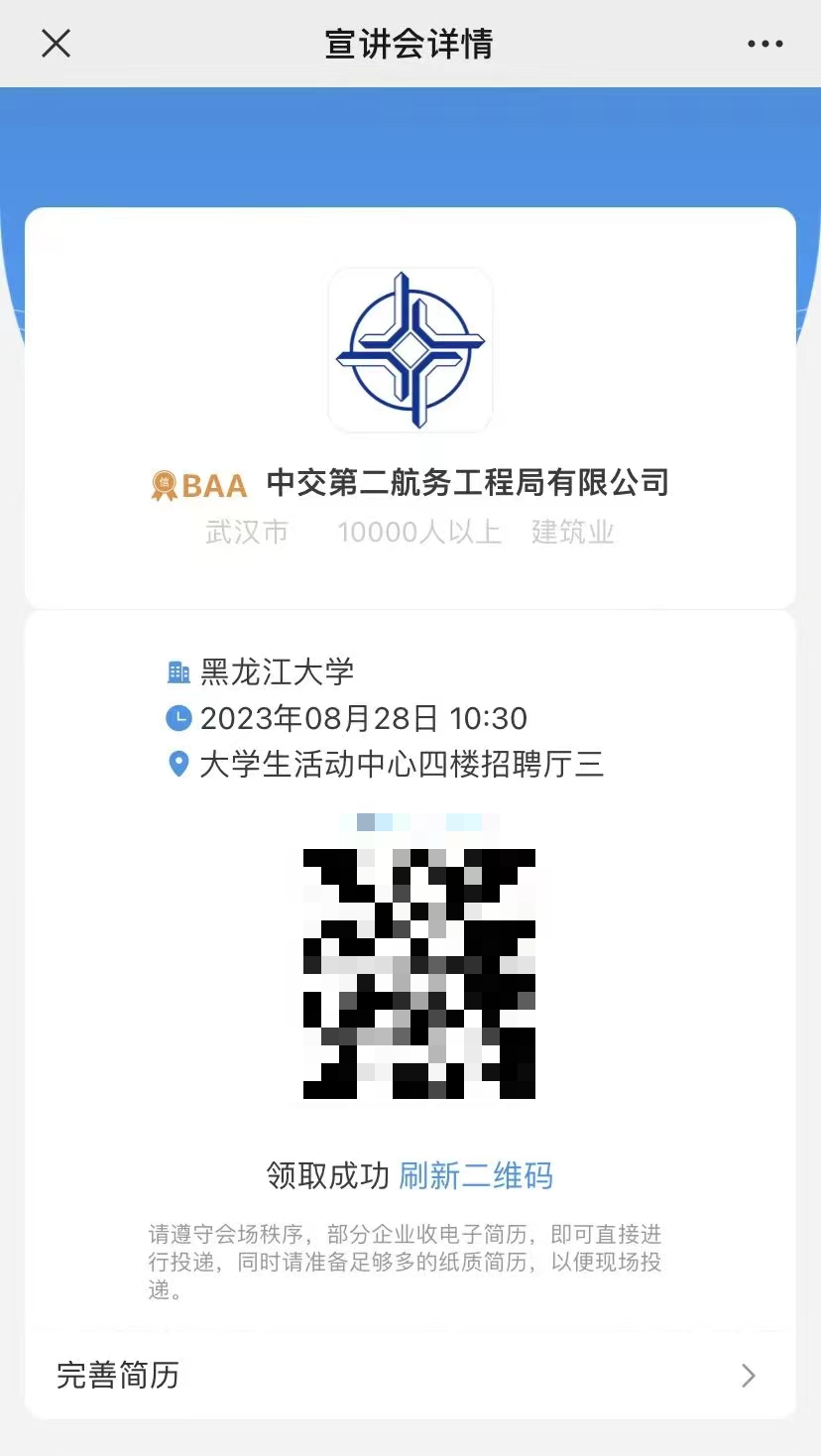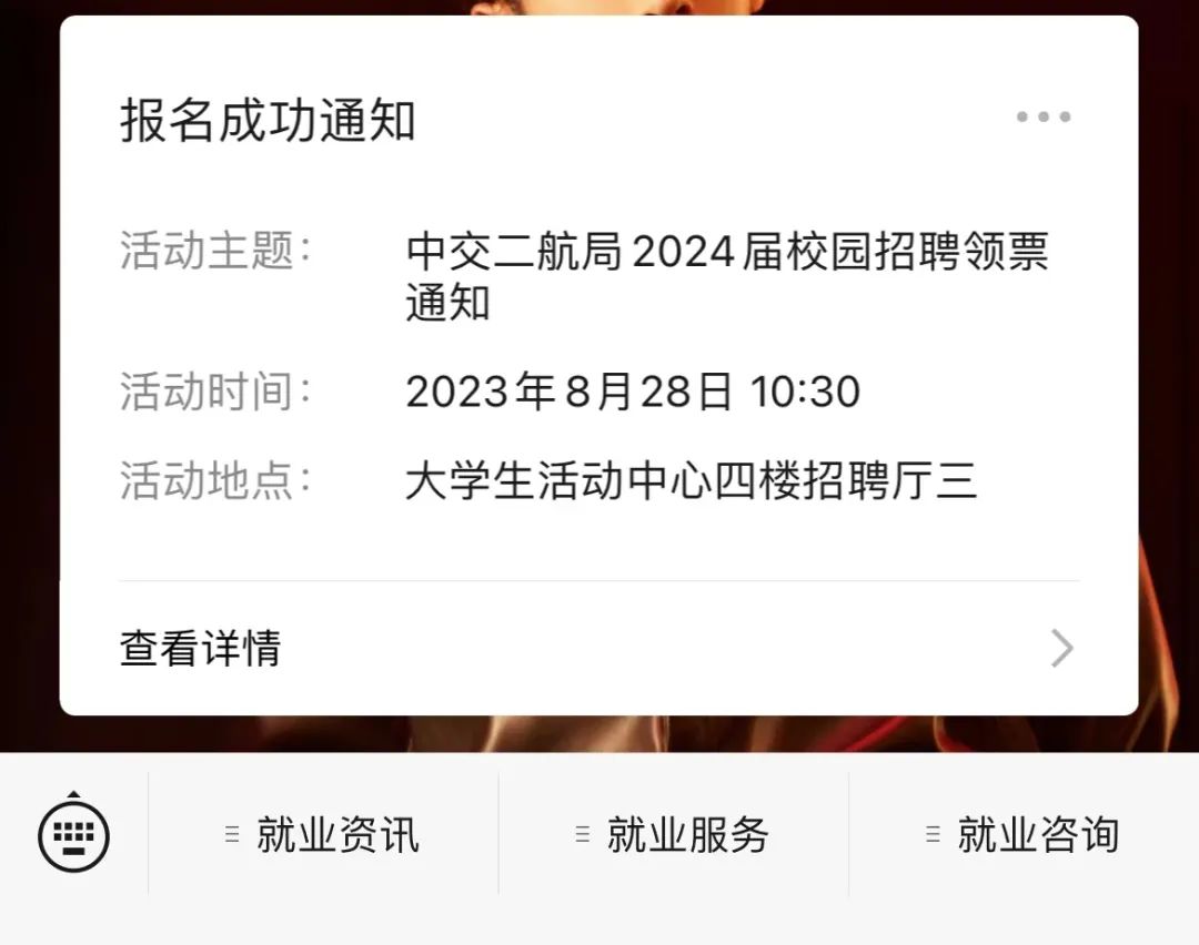 14. 退出宣讲会详情页面会出现报名成功通知,点击即可进去电子票通道