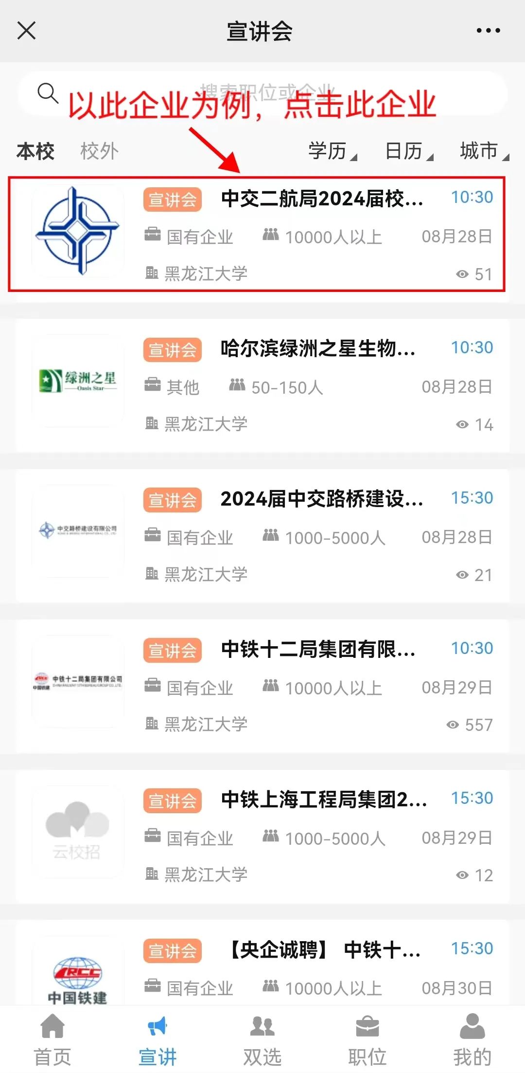 3. 进入对应页面后,点击想参加的宣讲会或双选会