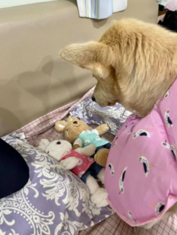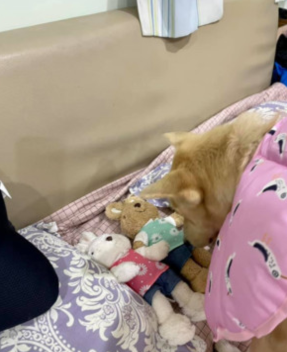 狗狗把玩具都叼上床,主人跟过去一看,瞬间笑喷:它在哄娃娃睡觉!