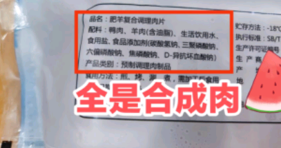 既然是合成肉,那么里面可能会有羊肉,但也有可能会添加鸡肉、鸭肉等其它禽畜类的肉,总之,商家一定会大量的添加比羊肉成本低的肉,这样才符合商家的利益,所以,买羊肉卷时,看到产品的类别是调理肉制品的,切记别买了。