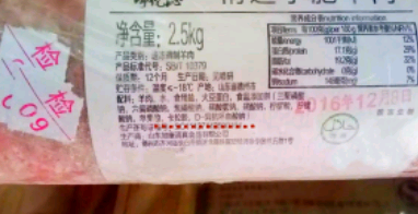 其次,除了看配料表,还要看看它的执行标准。只要是执行标准为GB2707的,百分百就是真羊肉。因为,这个是禽畜类原切肉的标准。所以,配料表是羊肉,再加上它的执行标准,两者对照一下,符合标准的就是真羊肉卷!