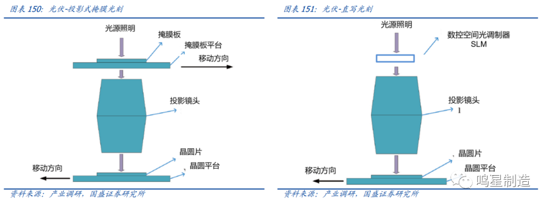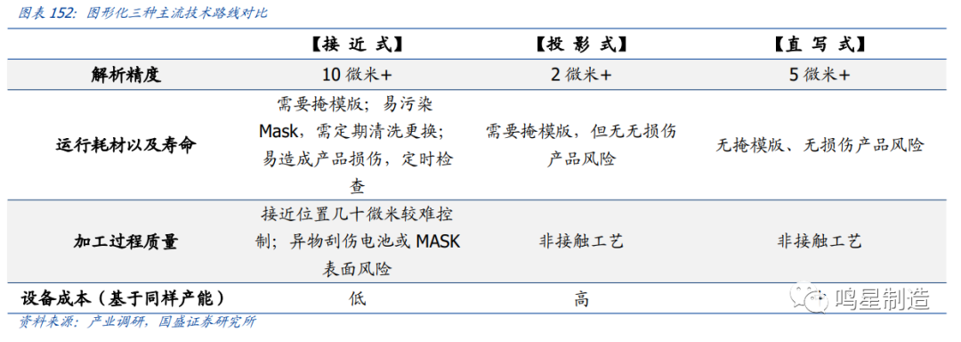 *投影式掩膜光刻:源自半导体行业技术,主要应用在半导体领域,精度高,成本高。