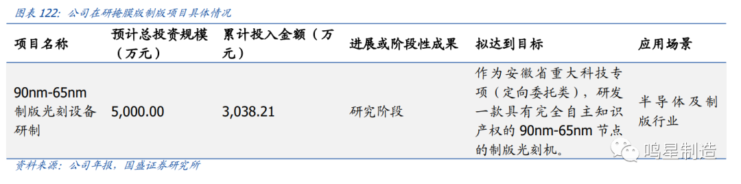 90nm-65nm制版光刻设备研制进行中。2022年立项的90nm-65nm制版光刻设备研制仍在研究阶段,项目完成后可产出完全自主知识产权的90nm-65nm节点制版光刻机,公司目前能够做到的掩膜版最高精度为90nm。如果65nm能够制版出来,或能够覆盖国内的70-80nm掩膜版产能,进一步强化国内领先市场地位。