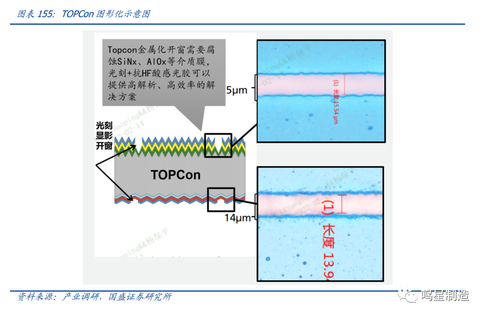 *TOPCon电镀图形化:Topcon金属化开窗需要腐蚀SiNx、AlOx等介质膜,光刻+抗HF酸感光胶可以提供高解析、高效率的解决方案,能够避免脉冲激光开窗带来的损伤,减少开路电压的损失提升转换效率。