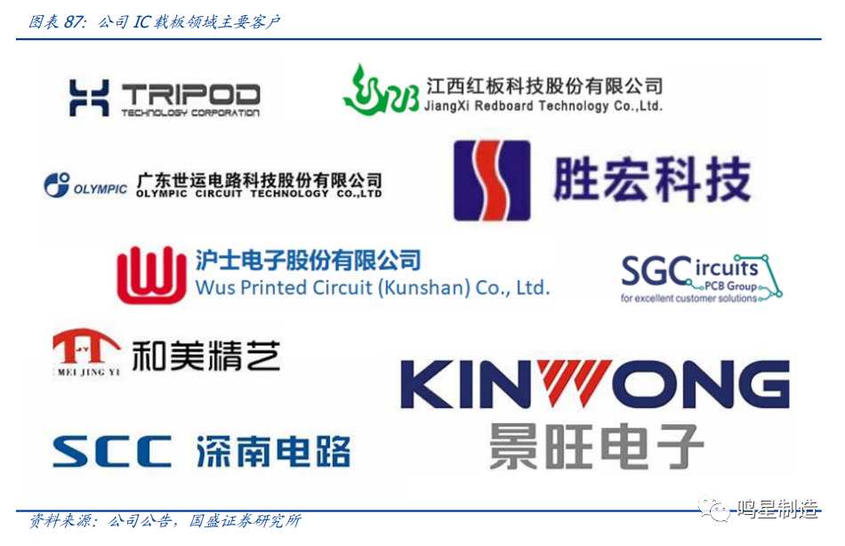 公司逐步开拓客户资源。公司IC载板直写光刻设备实现了对臻鼎科技、东山精密、深南电路、维信诺、明阳电路等IC载板厂商的销售,产品销售收入呈现快速增长趋势。随着下游客户加快产品高端化转型升级,或逐步进入IC载板市场或进一步扩充产能,均将有望增加公司IC载板直写光刻设备产品需求。根据公司公告,截止至2022年9月30日,IC载板领域有在手订单(包括在客户处验证)73台/套,对应的客户为健鼎科技、胜宏科技、景旺电子、世运电路、沪电股份、红板科技、和美精艺等。
