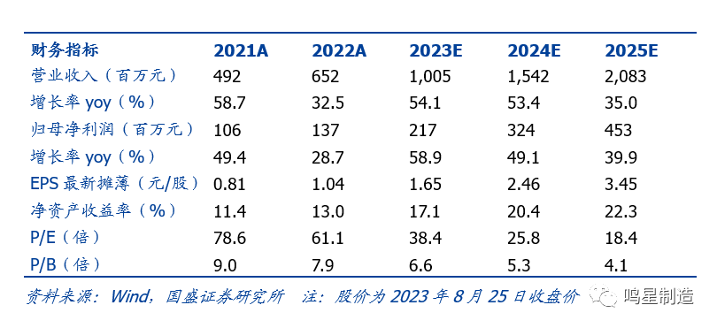公司打造国内直写光刻平台,PCB市占率快速提升,泛半导体翻倍增长,光伏从0到1爆发式增长。我们预计2023-2025年公司实现营业收入10.1、15.4、20.8亿元,同比增长54.1%、53.4%、35.0%;实现归母净利润2.2、3.2、4.5亿元,同比增长58.9%、49.1%、39.9%。