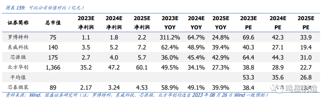 维持“买入”评级。公司是国内直写光刻设备龙头,打造直写光刻平台型企业逻辑顺畅,主业为PCB直写光刻设备、第二成长曲线泛半导体直写光刻设备翻倍增长,同时公司积极布局光伏电镀铜领域的曝光设备,业务覆盖范围广,目前业内尚无与公司业务完全相同的可比上市公司。在PCB与光伏电镀铜领域,我们选取PCB电镀设备龙头东威科技与光伏电镀设备、自动化设备龙头罗博特科作为可比公司。泛半导体领域,我们选取半导体设备龙头北方华创,以及在半导体设备细分领域具有显著优势的芯源微作为可比公司。2023-2025年,上述可比公司平均PE为53.3/35.6/26.8X,当前股价对应公司PE为38.4、25.8、18.4X。我们考虑到公司在PCB领域的深度布局,同时泛半导体领域有望翻倍增长,光伏从0到1有望实现爆发式增长,维持“买入”评级。