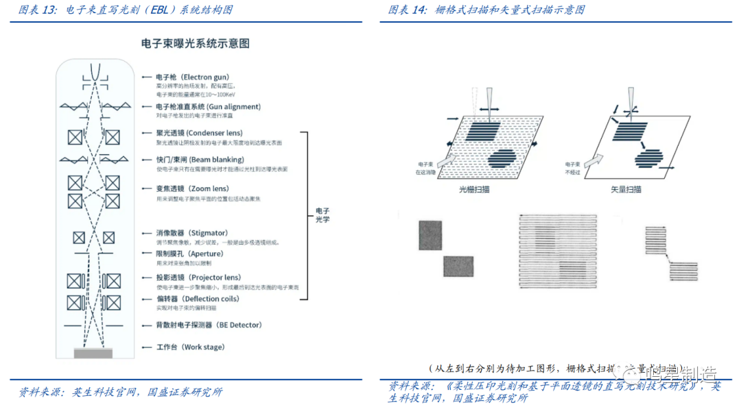*带电粒子直写光刻技术在掩膜版制造领域的技术运用:带电粒子直写光刻技术与激光直写光刻技术的原理相同,只是将辐射源用小至纳米级的带电粒子束取代了激光光束,能够实现更高的光刻精度,主要应用于IC制造所需的高端掩膜版制版领域。