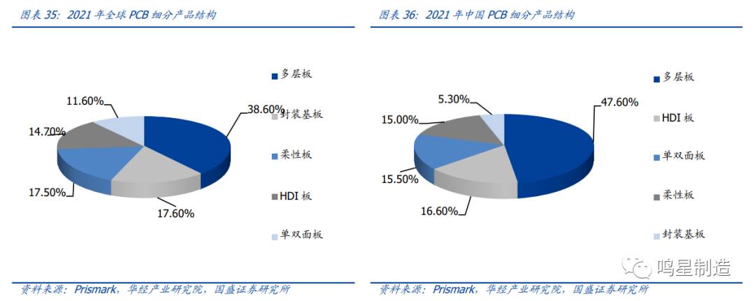 PCB行业呈现高端化趋势,产品结构不断迭代升级。随着5G时代、AI大算力时代、云计算等来临,催生着PCB下游需求如通信、数据存储、手机等多板块高增长。随着下游电子产品如智能手机、服务器等产品向便携、轻薄、高性能等方向发展,PCB产业逐渐向高密度、高集成、细线路、小孔径、大容量、轻薄化的方向发展。PCB产品结构根据终端需求不断演进,HDI、类载板、IC载板等中高阶PCB产品的市场份额不断提升,据Prismark数据统计,到2025年,HDI、柔性板、类载板等占比将达到52.6%,可见中高端PCB产品成长空间较大。