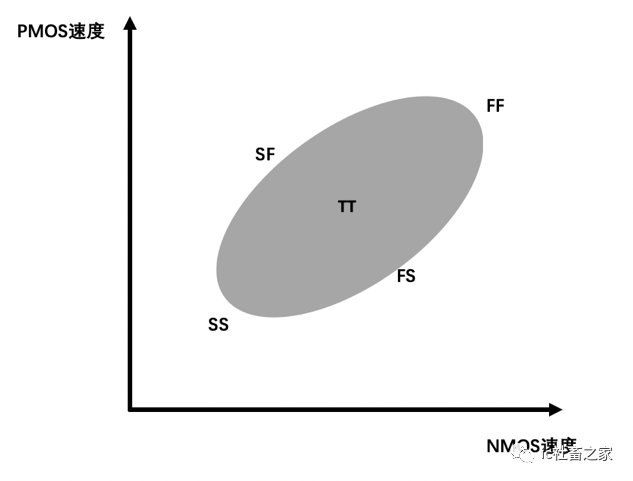 其中,PVT corner包含process(工艺),voltage(电压)和temperature(结温)三个指标。process常常使用ff、ss、tt分类,两个f、s或t分别表示NMOS和PMOS的process是fast,slow还是typical;电压通常是典型电压的0.9倍或1.1倍;温度通常是-40到125℃范围内,根据工业级(C),车规级,军事级(M)和宇航级(R),温度范围可能略有不同。