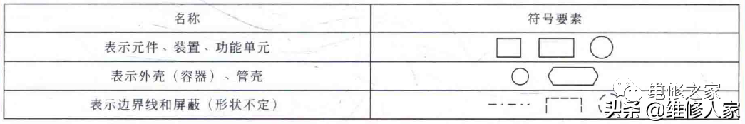 符号要素是指一种具有确定意义的简单图形,通常表示元件的轮廓或外壳,符号要素必须同其他图形符号组合使用。电工电路中常见的符号要素如下表所列;