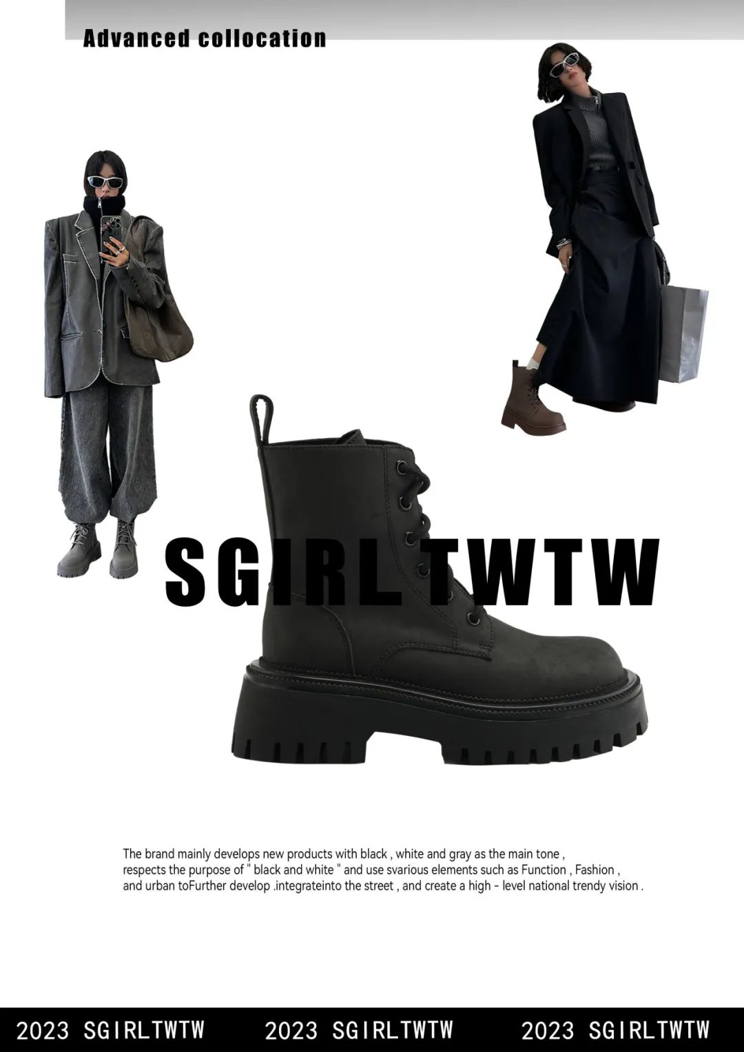 SGIRL TWTW 品牌以敏锐的潮流触觉,打造出深受潮流人喜爱的鞋款;在色彩和面料搭配上大胆尝试,每每充满各种不同元素冲击,以超越自我,不断创新的理念,充分展现出SGIRL TWTW品牌独一无二的时尚魅力。让自信的潮流人物坚持自己的想法,打破常规,做最真实的自己。