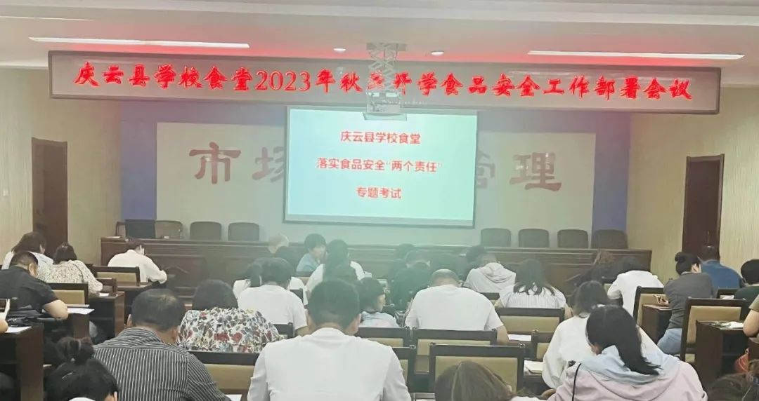 培训会上还举行了庆云县学校食堂落实食品安全“两个责任”主题考试,对全县学校食堂的食品安全总监、食品安全员进行考核。