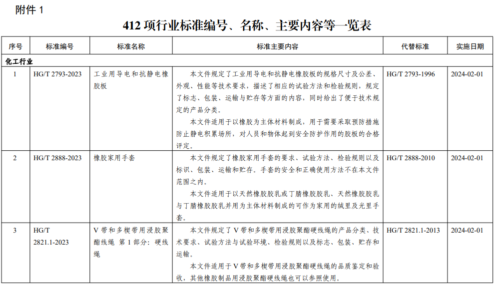 【《工业用导电和抗静电橡胶板》等412项行业标准(部分)】