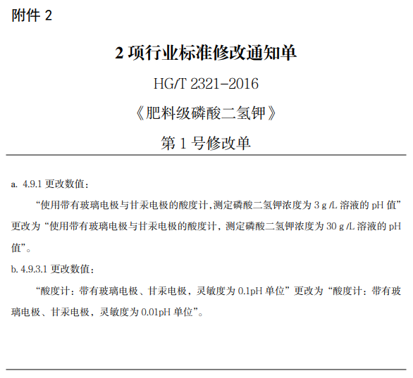 【《肥料级磷酸二氢钾》等2项行业标准修改单】