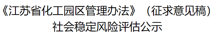 为规范我省化工园区管理,优化产业布局,推动产业转型升级、提质增效,实现安全绿色高质量发展,江苏省化工产业安全环保整治提升领导小组办公室起草了《江苏省化工园区管理办法》(征求意见稿,以下简称《办法》),并委托第三方评估机构江苏博事达律师事务所开展社会稳定风险评估,现根据《重大行政决策程序暂行条例》《江苏省重大行政决策程序实施办法》《江苏省行政规范性文件管理规定》等法规规章规定,对《办法》予以公示,广泛征求利益相关者的意见和建议。