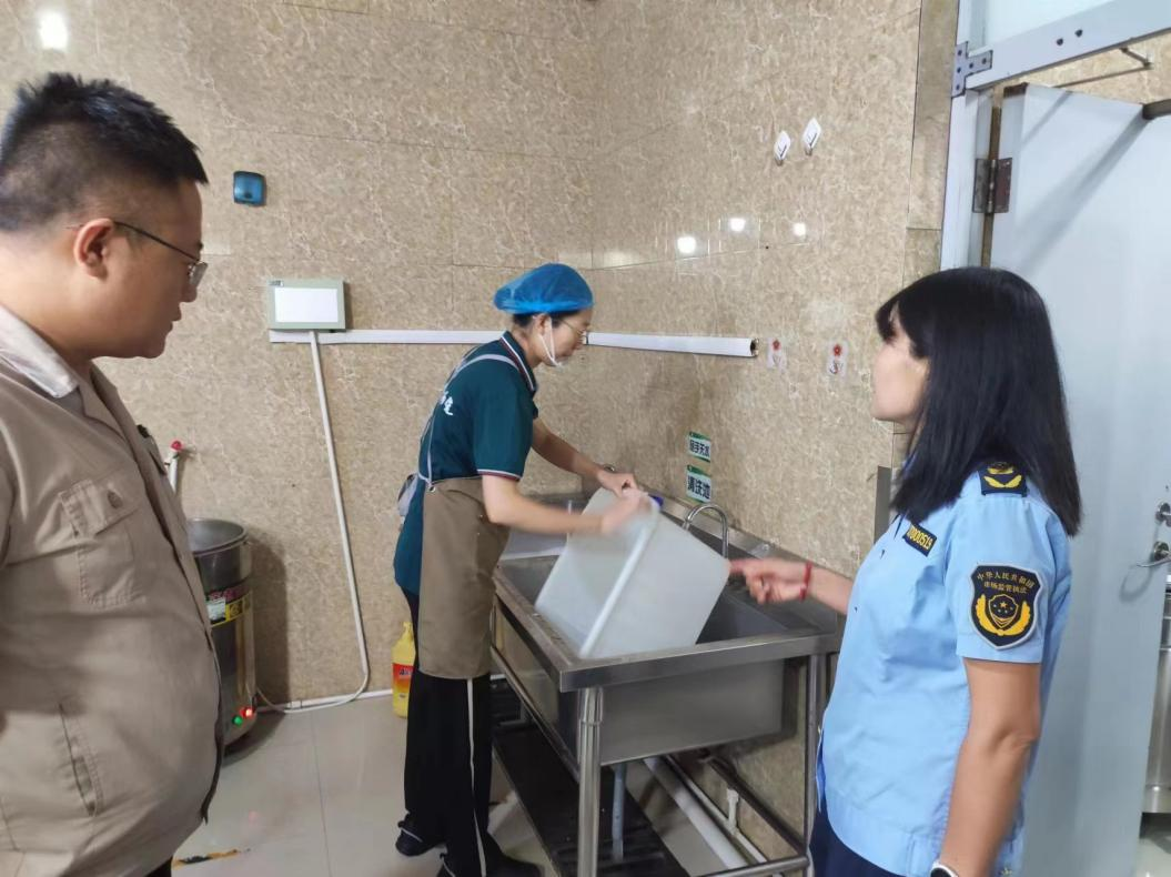 学校的食品安全最牵动家长的心,为保障2023年秋季开学季食品安全,近日九原区市场监督管理局职教园区市场监管所组织开展辖区开学前校园食品安全专项检查,进一步加强校园食品安全监管,全力打造食品安全示范城市点位,为师生营造一个安全放心的食品安全环境。检查中,执法人员深入学校食堂及周边食品经营单位,对餐饮环境、后厨卫生、供货商资质、台账记录、餐饮从业人员健康管理等方面进行全面细致的检查;此外,对便利店在售食品的进货日期、进货台账、供货商资质、食品从业人员健康管理进行检查,重点查处是否经营标识标签不规范的“三无”产品等行为。