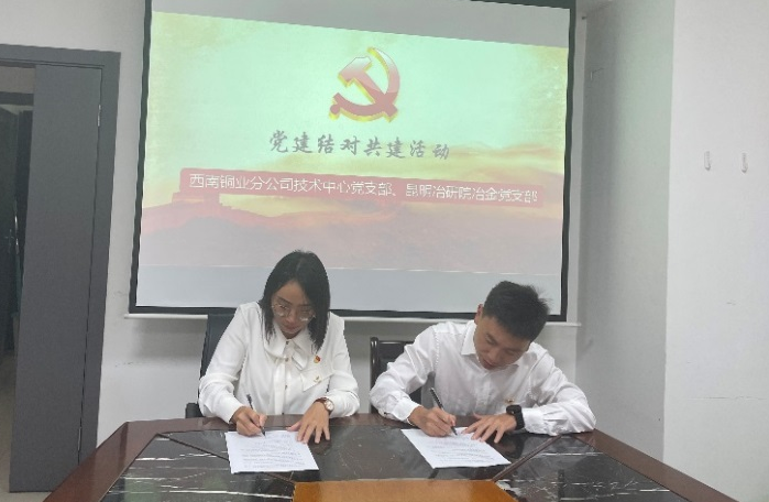 8月25日上午,冶金党支部与西南铜业分公司技术中心党支部举行党建结对共建签约仪式,公司副总经理、工会主席和晓才,冶金党支部书记、副所长徐庆鑫及党员代表参加会议。