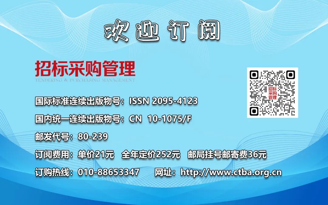 ★本会《招标采购管理》杂志拥有此文版权,若需转载或复制,请注明来源于《招标采购管理》,标注作者,并保持文章的完整性。否则,将追究法律责任。