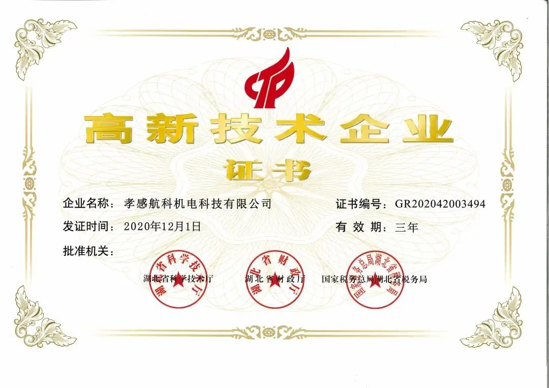 经过6年的经营发展与技术沉淀,航科机电已被认定为“科技型中小企业”、“国家高新技术企业”、“创新型中小企业”。
