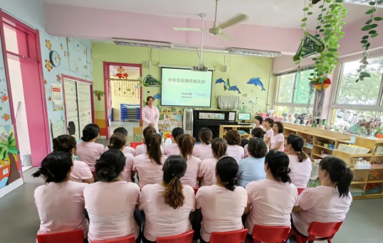 此次大赛本着“以赛促训、以赛促学”的发展思路,旨在培养新时代优秀、专业的高素质生活老师,进一步推动幼儿园人才队伍建设。比赛采用百分制,共20名幼师参赛,分为理论测试和现场实际操作两个环节。