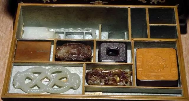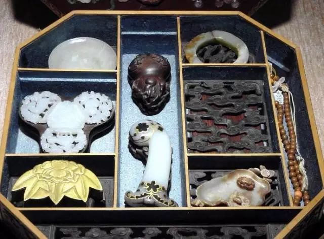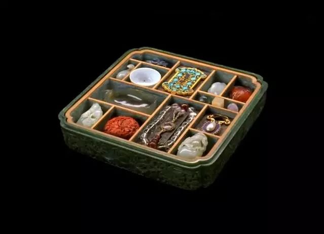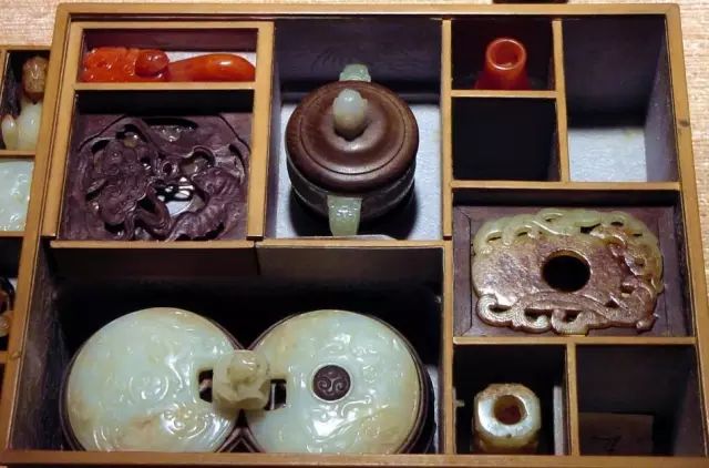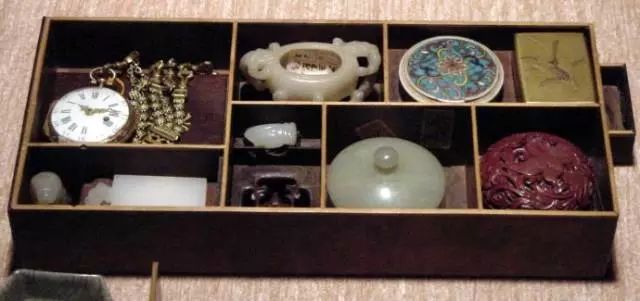 打开来看,不同的空间摆放着大小不同的珍玩,严丝合缝,不浪费一丝空间;
