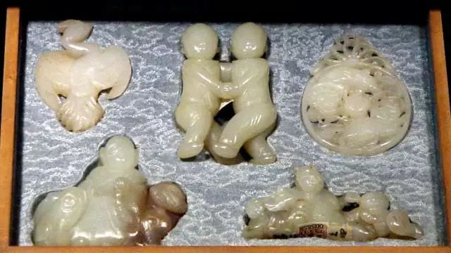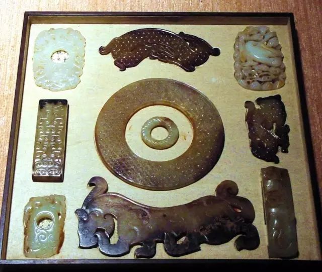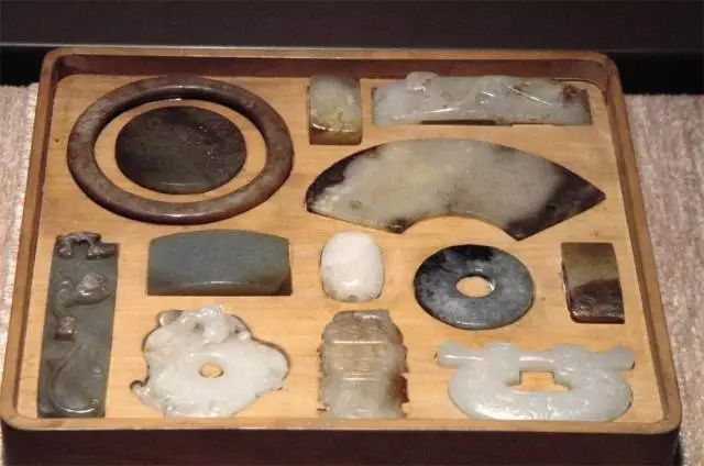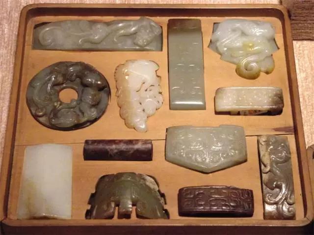 值得一提的是,托盘里选的玉器都是片状的,托盘底部按照每一个玉器的外部轮廓,分别挖出凹槽。