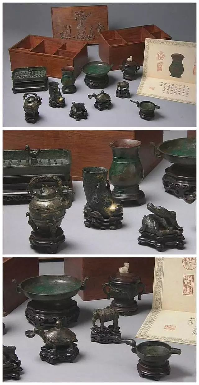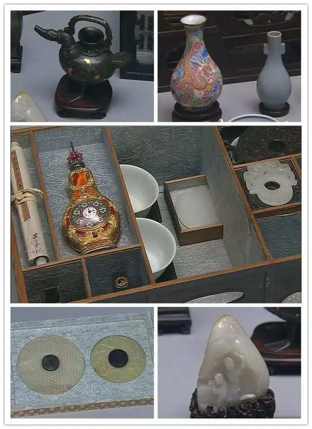大部分器物的尺寸都小于10厘米,既有历朝历代的玉器、书画、珐琅器、铜器,也有来自日本和西洋的舶来品。