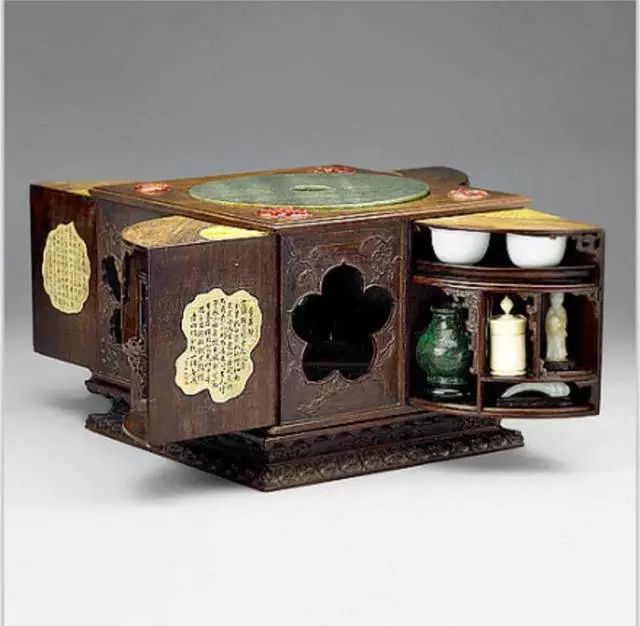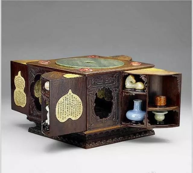 据说,有些设计巧妙的多宝格,让人即使看到格中、抽屉里或隔板旁有宝物,也因找不到机关而拿不到。