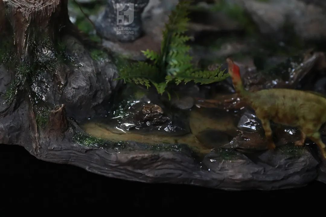 旁边的石头跟苔藓也做了湿润效果