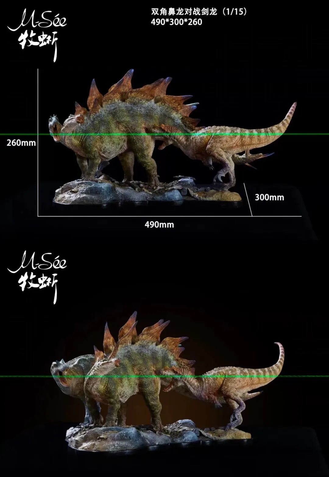 食肉牛龙+锡拉翼龙+南方小贵族龙场景 小雕像