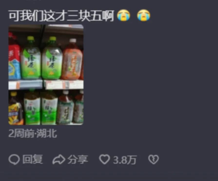 这几天随便点开一个关于冰红茶的视频,都有几十、上百万的点赞。有人教网友如何正确地喝完一整瓶冰红茶,有人赞美它代表着生活的真谛。“便宜”“解渴”,这些字眼就像皇冠一样牢牢地焊在了它那小巧的黄色的瓶盖上。在无数能给人带来快乐的事物纷纷价格攀升之时,曾经嫌弃过冰红茶的年轻人,开始重新表达对它的敬意。它是普通人的红酒代餐,自带深厚的文化底蕴,饮用时还得配上必要的仪式感。你可以如下面的“秃头吴彦祖”,一口仰毕,感受它填满口腔的绵密口感;也可以像这位品酒大师John,用高脚杯轻轻啜饮,品尝它的前调甜、中调苦、后调甘。就连国宴大厨陈夏辉夏叔,都亲自下场教大家如何盐搓柠檬、轻煎茶叶,做出一杯“百分百冰爽”的冰红茶。当然正如每一种被认定为高端的食物,冰红茶内部也产生了鄙视链。像下面这位朋友就认为:“常温的冰红茶难登大雅之堂,但是冰镇之后,立马换血洗髓,口感上了N个Level,堪比国窖珍藏。”不过有一种冰红茶的地位,始终傲然居于其他同类之上;正如冰红茶信徒们时常念叨的咒语:“3块钱是面子,4块钱是生活,不是小瓶买不起,而是大瓶更有性价比。“前者只有500ml,可是小巧且流线型的瓶身,让人拿在手里不跌份,比较“有面子”。而4块的冰红茶Pro版本虽然只贵了1块钱,但容量达到了1L。美中不足的是瓶身笨重,所以明眼的路人一看这瓶身,就知道购买者肯定是追求其大容积,显得十分的不高雅。相亲时请对象吃饭,之前大家还在讨论团购是否丢面子,而如今罪状又增加一条,请喝冰红茶。赞美它的则玩起了逻辑反问,说自己“喜欢喝6块钱2L的,我是什么”?甚至还有朋友爆料,在他生活的地方,4块钱的冰红茶都算贵的了,自己那边的大容量冰红茶,才卖3块5。与其说这次在互联网上翻红的是冰红茶本身,倒不如说是它自带的“便宜”标签。正如在社交平台上最流行的喝法:“一瓶4块钱的冰红茶喝掉一半,加入柠檬和水,你就可以得到一瓶6块的脉动。但面对“土狗饮料”的指责时,最忠实的冰红茶信徒却会毅然站出来捍卫自己最爱饮料的尊严——“难道我不喝冰红茶就不穷么?我又不是因为喝冰红茶才变穷的,冰红茶却因为我背上了土狗饮料的骂名。”在空调办公室喝冰美式、啃白人餐的白领们,大多受不了它过甜的口味。
