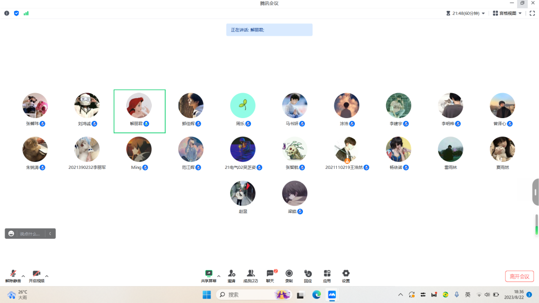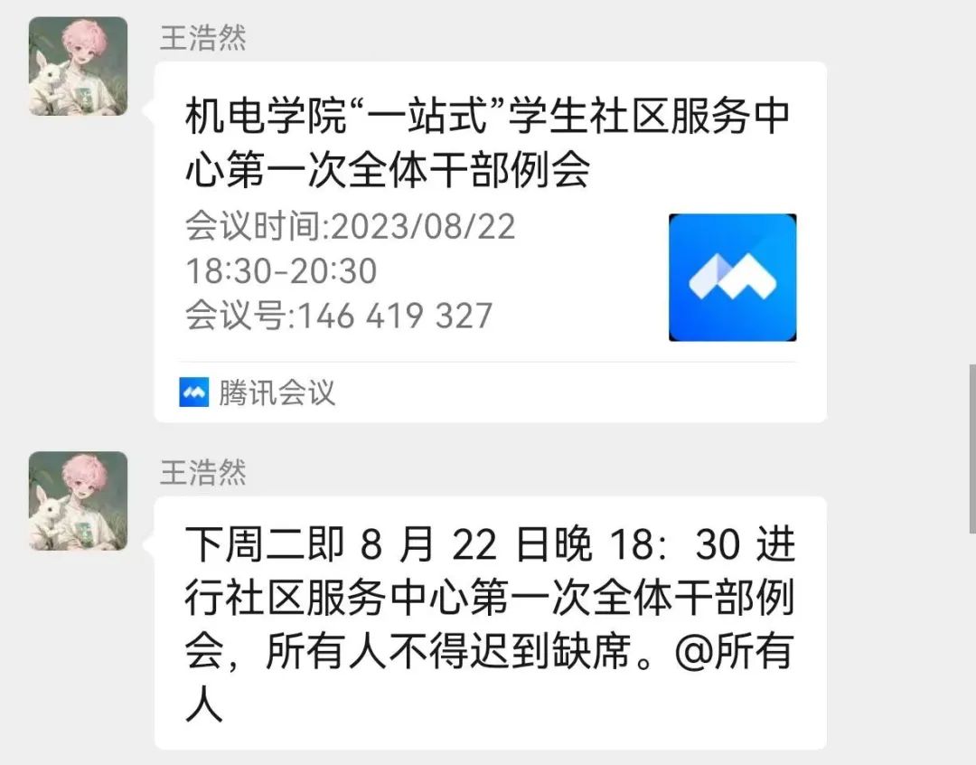 为进一步加强学院学生干部队伍建设,增强学生干部队伍的凝聚力和向心力。“一站式”学生社区服务中心于8月22日晚举行第一次全体干部线上例会。此次大会由主任王浩然同学主持,团委书记解丽君老师和学生社区服务中心所有干部参与了此次大会。