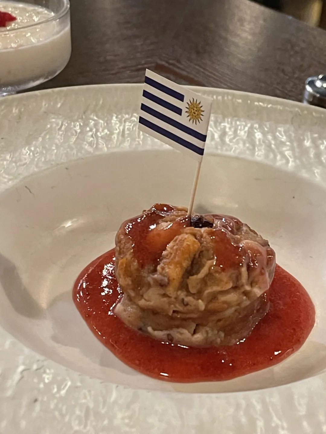 甜品,乌拉圭坚果面包布丁。比较敦实,里面有坚果,有明显的肉桂香味。