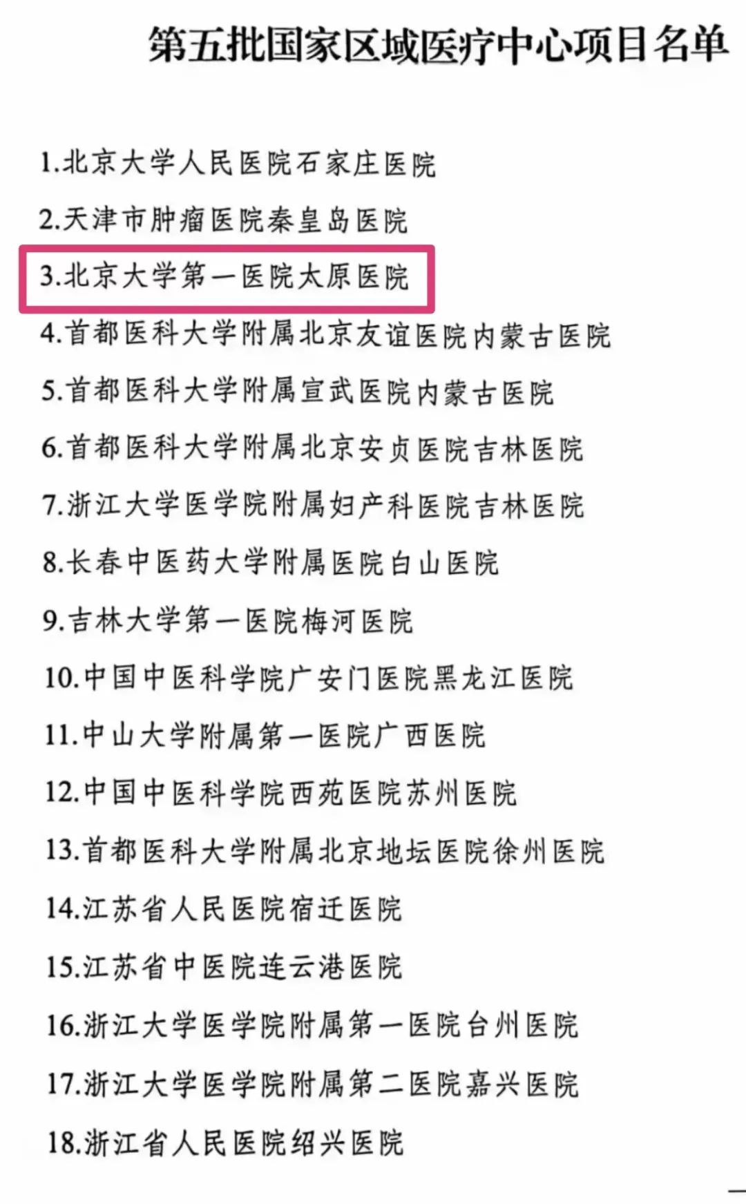 2019年10月,《第一批国家区域医疗中心建设项目名单》出炉,科技大学附属同济医院山西医院(山西白求恩医院)成为山西省第一个国家区域医疗中心建设项目。