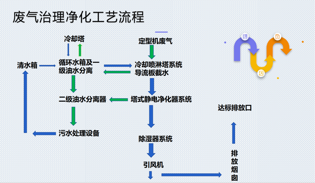 4.废气及油烟冷却散热时产生水汽,采用导流板式截水