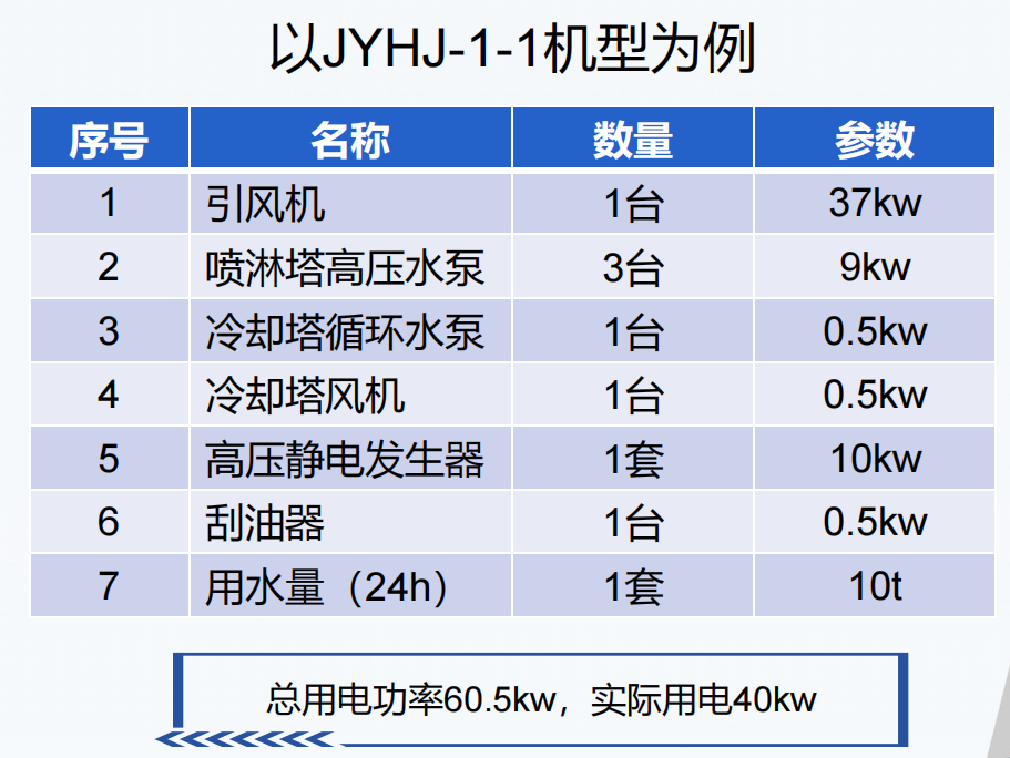 定型机油烟净化器能耗参数(水、电、气)