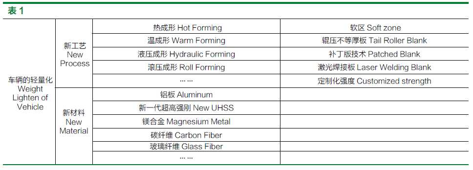 车身轻量化工艺分布