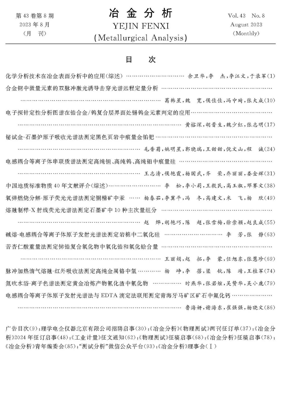 《冶金分析》期刊网址:http://yjfx.chinamet.cn。