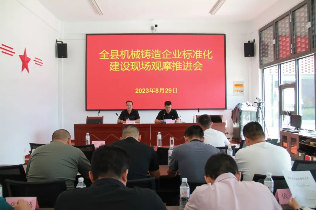 8月29日,沂南县召开全县机械铸造企业标准化建设现场观摩推进会,有关乡镇(街道)应急办副主任、开发区安监办主任,全县15家机械铸造企业主要负责人和安全员等参加会议。