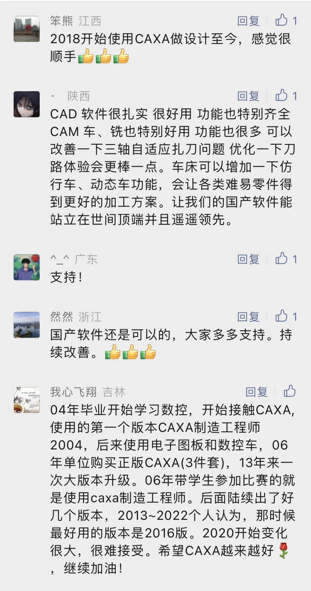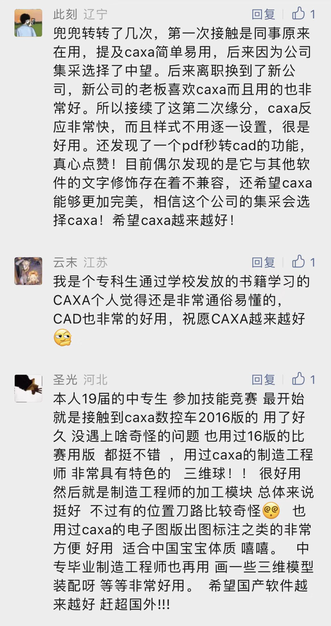 机械CAD/CAM留言赠礼活动举行以来,我们公众号下方的精选留言已达50余条。在这些留言中,我们看到了许多真挚的问候和祝福,听到了许多真诚的建议和意见。这些声音都让我们更加深入地了解到了用户的需求和期望,也为我们的产品和服务提供了宝贵的改进方向。在此,我们要向每一位参与留言赠礼活动的网友表示衷心的感谢。你们的支持和鼓励是我们前进的最大动力,也是我们不断努力、追求卓越的源泉。面向人群:学校教师或企业工程师