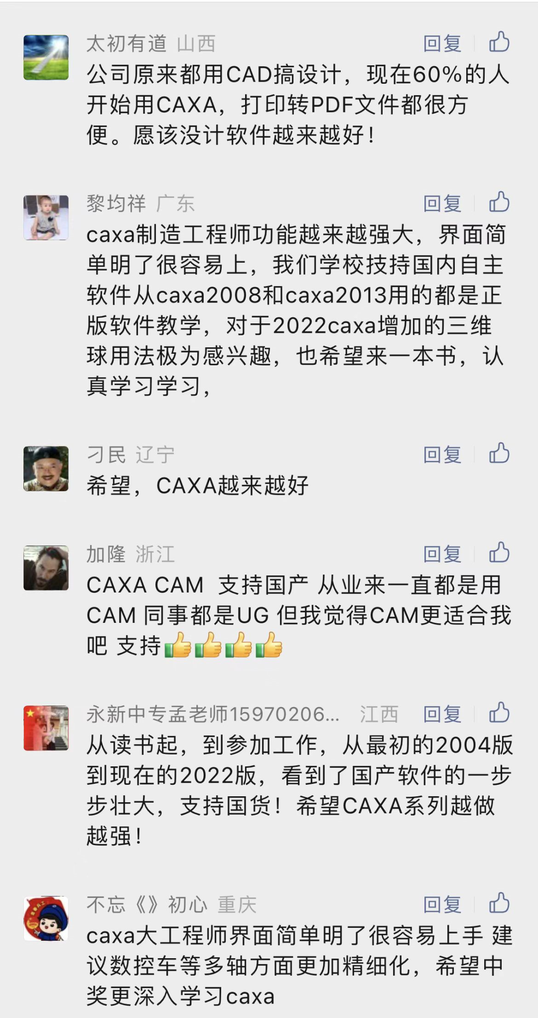参与方式:在文章下方留言使用CAXA CAM的心得体会,对CAXA CAM的建议,以及试用需求等,留言点赞量前20名,可获赠新书1本。