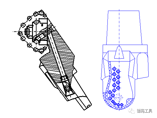 牙轮钻基体多为热处理后的低碳高温合金钢,属于典型的难加工材料。根据材料牌号的区别,硬度在HRC42-58之间。热处理后表面附着2-5mm的硬化层,具有高抗剪切应力,加工时所需切削力是普通合金钢材料的2~5倍。具有低导热率,加工时热量集中在切削区,不易扩散,致使切削刀具迅速磨损。
