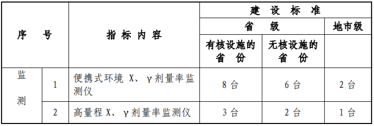 关于对辐射环境的监测,中国在2007年即已出台《全国辐射环境监测与监察机构建设标准》。该标准将全国辐射环境监测与监察机构划分为国家级、省级、地市级、县级四个级别,并对基本仪器配置作出详细说明。