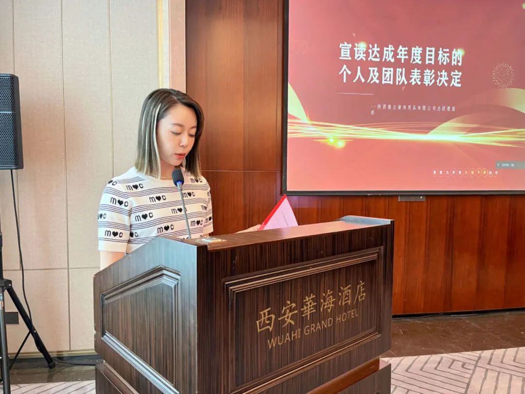 陕西雅兰寝饰用品有限公司总经理屈娇宣读了完成年度目标的个人及团队表彰决议。总裁任勇向完成年度目标的个人及团队颁发了喜卡、团队礼品及个人礼品。