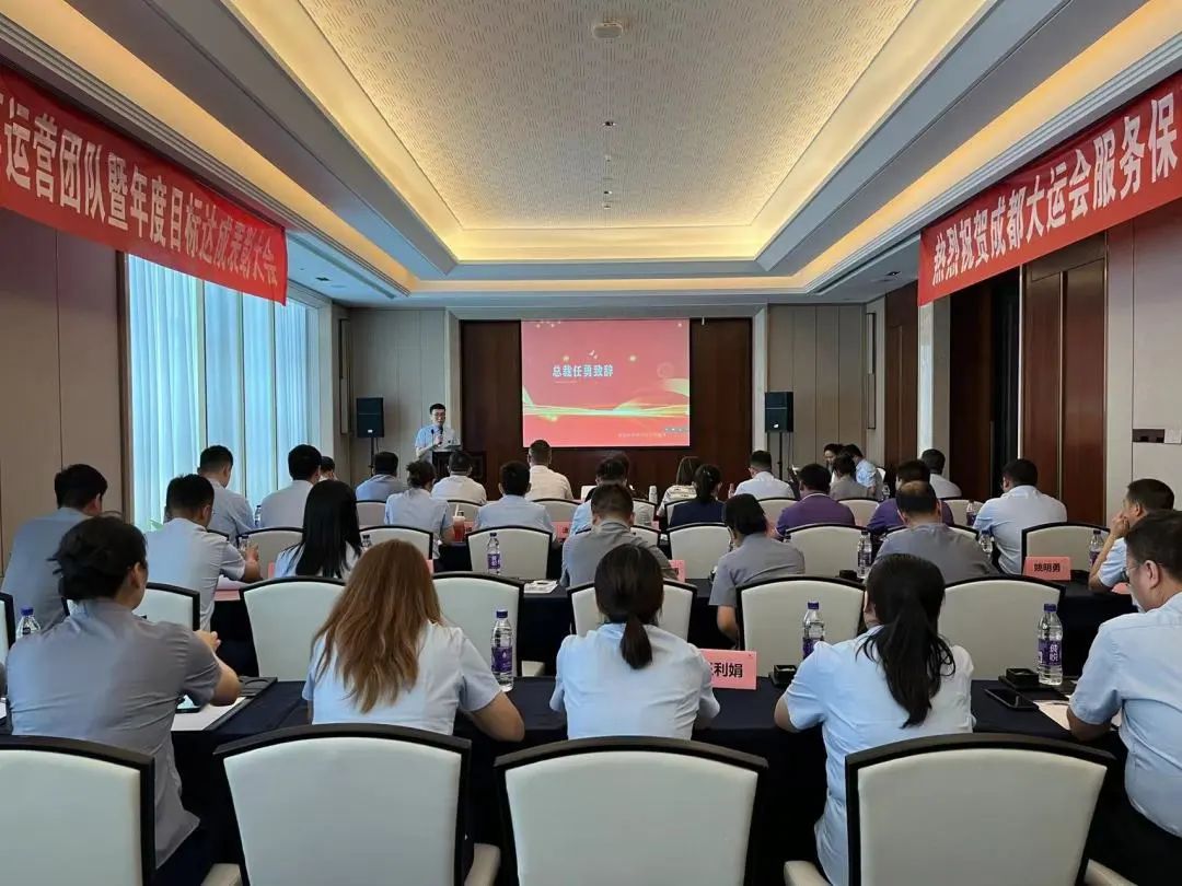 总裁任勇首先向圆满完成大运会赛事保障服务和全面完成全年任务的同仁和团队表示热烈的祝贺!向在此期间辛勤付出和不懈努力的团队、个人表示衷心的感谢!